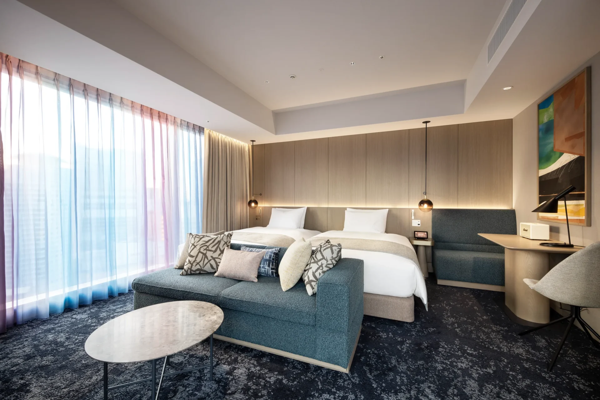 梅田のダイナミックな高層ビル群の中にありながら、一歩入ると別世界の静寂があるホテルをピックアップしました。